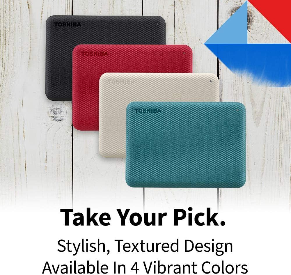 The Canvio Advance portable external hard drive allows creators to do what they do best–anywhere their lives take them–offering high storage capacity, easy access to your stored content and the time-tested reliable performance they need. Featuring a compact design with a stylish, textured finish, the Canvio Advance helps keep your files safe and secure with easy-to-use auto backup and password protection software (free download, for Windows PC only).