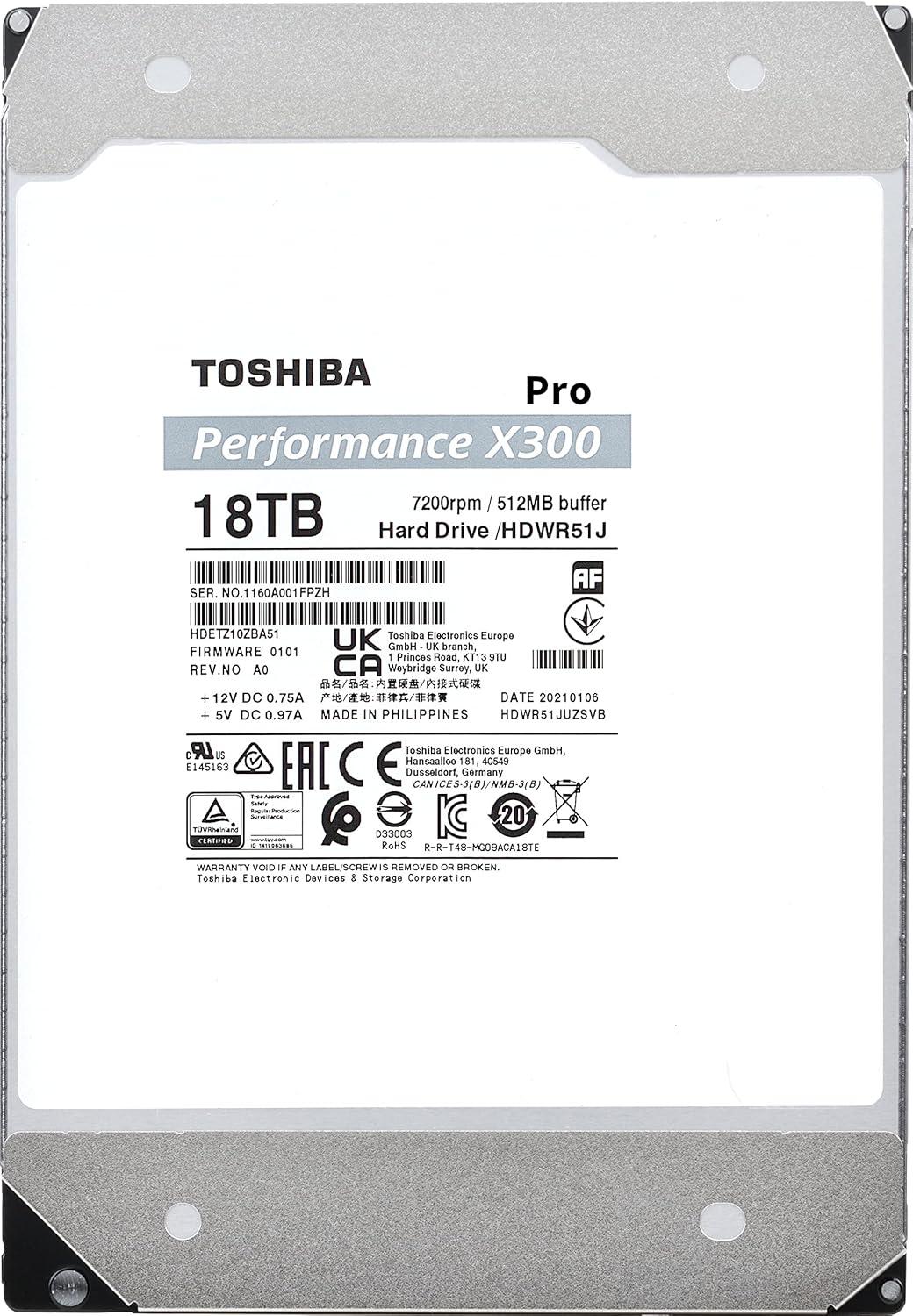 The Toshiba X300 Performance Internal Hard Drive is designed for professional systems, home media computers, and gaming PCs. The X300 Hard Drive offers 7200 RPM, large cache size, and Toshiba Cache Technology to take your gaming to the next level along with massive capacity to store your growing gaming library. Plus, the X300 comes with data protection technologies to help mitigate vibrations and improve tracking accuracy all of which means more reliability than ever for backing up your digital content. Put the extreme performance, capacity, and reliability of the Toshiba X300 Performance Internal Hard Drive behind your game and graphics intensive projects. [Note]: (1) One Terabyte (1TB) means 10{12] = 1,000,000,000,000 bytes using powers of 10. Actual formatted storage capacity may vary. For details, please visit Toshiba's Consumer HDD website. (2) Compatibility may vary depending on user’s hardware configuration & operating system. (3) Product specifications, colors, configurations and components are subject to change without notice. (4) “2.5-inch” & “3.5-inch” mean the form factor of HDDs. They do not indicate drive's physical size. (5) For “Drive Bays Supported”, please contact your Solutions Provider as compatibility with host device will vary based on the system. (6) Workload is a measure of the data throughput of the year, and it is defined as the amount of data written, read or verified by commands from the host system. (7) MTTF (Mean Time to Failure) is not a guarantee or estimate of product life; it is a statistical value related to mean failure rates for a large number of products which may not accurately reflect actual operation. Actual operating life of the product may be different from the MTTF. (8) Read and write speed may vary depending on the host device, read and write conditions, and file size. (9) Drive life may vary depending on usage and workload. (10) Standard limited warranty terms apply. The warranty brochure can be viewed at Toshiba's Consumer HDD website.